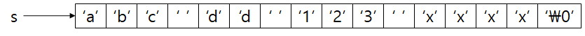 위의 그림처럼 s가 들어왔고 구분자가 스페이스(' ')라면 ret 배열을 반환해 주어야 한다. 위의 경우 get_count함수의 반환 값은 4("abc", "dd", "123", "xxxx")가 되는데 여기에 문제의 요구사항에 작성되어있는 마지막은 NULL로 끝내야 한다 를 만족하기 위해 마지막에 추가로 NULL을 넣어줄 공간 하나를 더 추가해야 하기 때문에 get_count + 1만큼 동적 할당을 해주어야 한다.